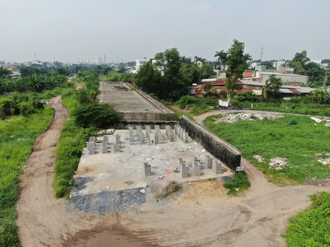 | Đoạn Vành đai 2 dài 2,7km từ đường Phạm Văn Đồng đến nút giao Gò Dưa (TP Thủ Đức) đã dừng thi công trong thời gian dài. Ảnh: SGGP |