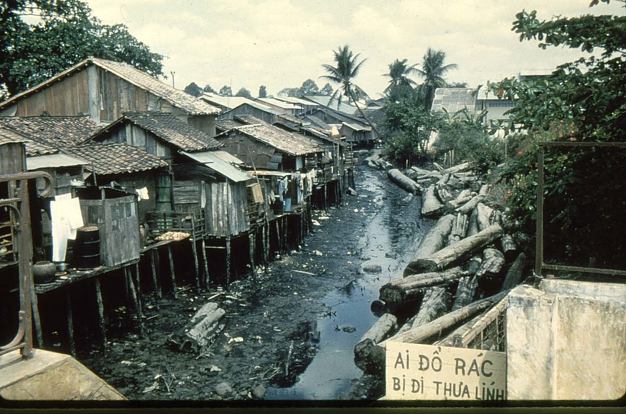 Trung tâm thành phố có một số công trình, khu phố được xây dựng to đẹp và sang trọng, tuy nhiên, các công trình này chủ yếu do Pháp xây dựng từ thập niên 1940, các khu nhà mới rất ít được xây dựng kể từ sau năm 1950, trong khi đó dân cư nông thôn đổ về thành thị tìm việc và tránh chiến sự khiến Sài Gòn dần trở thành một khu ổ chuột khổng lồ31 . Khảo sát cho thấy khoảng 40% dân số khu vực Sài Gòn khi đó (tức khoảng 1,2 triệu người) phải sống tại khu ổ chuột với những điều kiện về y tế, vệ sinh rất kém32